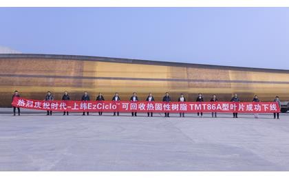 上緯新材與時代新材合作使用 EzCiclo可回收熱固性樹脂TMT86A型葉片成功下線